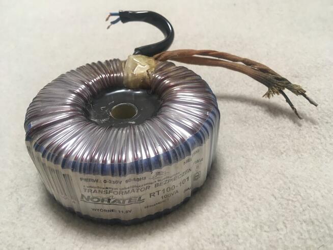 Dzień dobry Państwu. Oferuję do sprzedaży transformator toroidalny 100 VA 230V / 11,5V. Model RT 100-101 Używany, ...